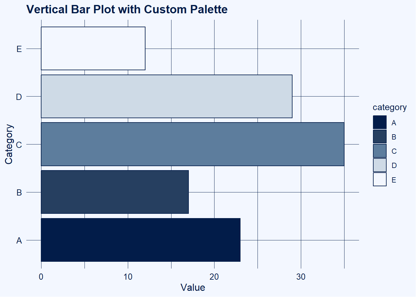 geom_bar(stat = "identity", color = "#021C49") + # bars outlined in darkest color
